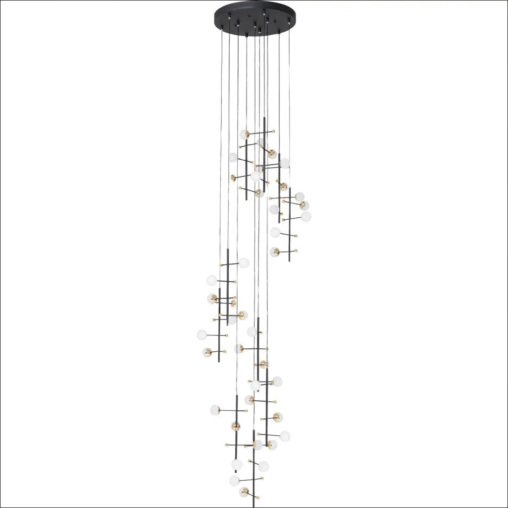 Juodas dizainerio šviestuvas XL formato su daugybe pieniškai baltų sferinių lempučių, skleidžiančių netiesioginę šviesą. Maži auksiniai dekoratyviniai gaubteliai atrodo puikiai. Absoliučiai įspūdingas savo efektu: dėl vertikalaus išdėstymo šis šviečiantis objektas paryškina kambario aukštį ir idealiai tinka seniems pastatams. 230 V, 50/60 Hz, lemputės lizdas G9, šviestuvų skaičius 40, maks. 1,5 vato, lemputės nepridedamos; “Kare Design”; Siuntimo pakuotė gali būti ne originali, prekė siunčiama pilnai arba dalinai surinkta; |