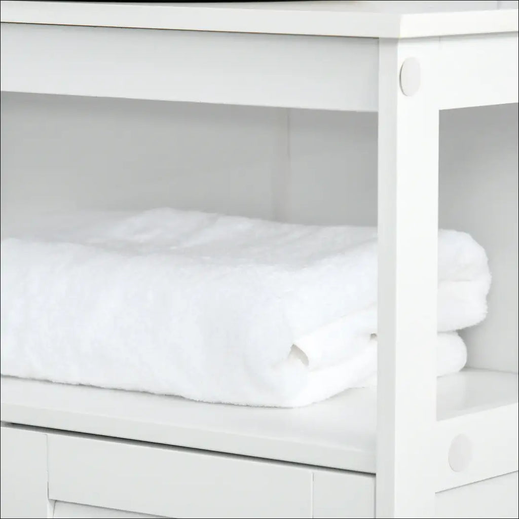 Idealiai tinka mažiems vonios kambariams, kuriuose erdvė ribota. Balta apdaila atrodo puikiai ir tinka jūsų vonios kambaryje, svetainėje ar mažoje virtuvėje; “Homcom”; Siuntimo pakuotė gali būti ne originali, prekė siunčiama nesurinkta. |