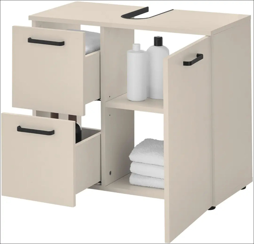 Modernaus stiliaus praustuvo spintelė suteikia vonios kambariui ypač individualų dizainą. Su sifono išpjova viršutiniame aukšte; Sifono išpjova P x G 10 x 25 cm; Švelnaus uždarymo mechanizmas durelėms ir stalčiams. Ši vonios spintelė pagaminta iš tvirtos, patvarios, melaminu dengtos inžinerinės medienos, užtikrinančios kokybę. Pagaminta Europoje. FSC Mix 70 %. “Modern Moments”; Siuntimo pakuotė gali būti ne originali, prekė siunčiama pilnai arba dalinai surinkta; |