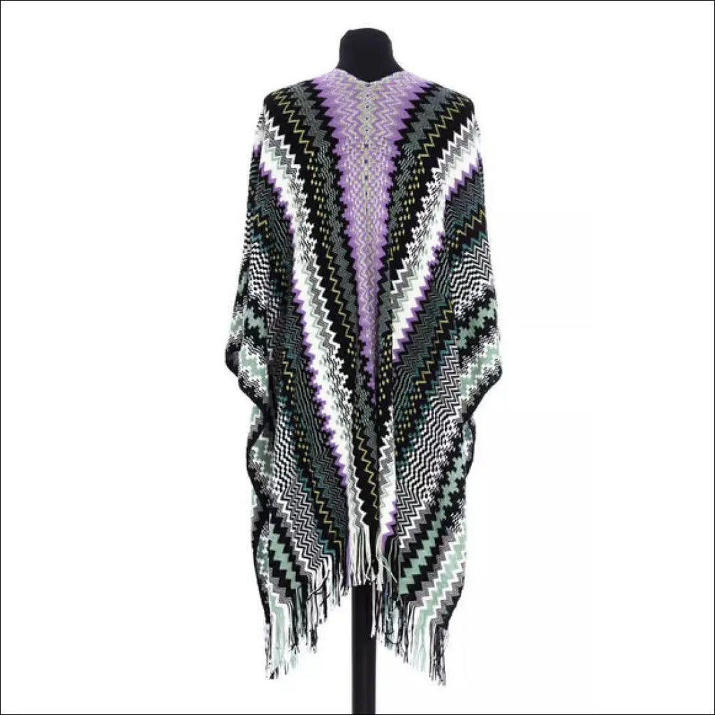 Pasinerkite į itališko žavesio įsikūnijimą su žaviu „Missoni“ kutais puoštu ponču, papuoštu geometrine fantazija, primenančia tapytojo paletės gyvybingumą. Šis pončas – išskirtinis drabužis, skirtas drąsuoliams. Prabangus medžiagų derinys žaismingai krenta į kutus, siūbuojančius kartu su kiekvienu jūsų judesiu. Net 100 cm x 45 cm dydžio pončas su kutais – puikus aksesuaras, suteikiantis jūsų garderobui ikoniško „Missoni“ žavesio; “Missoni”; Siuntimo pakuotė gali būti ne originali, prekė siunčiama pilnai arba dalinai surinkta; |