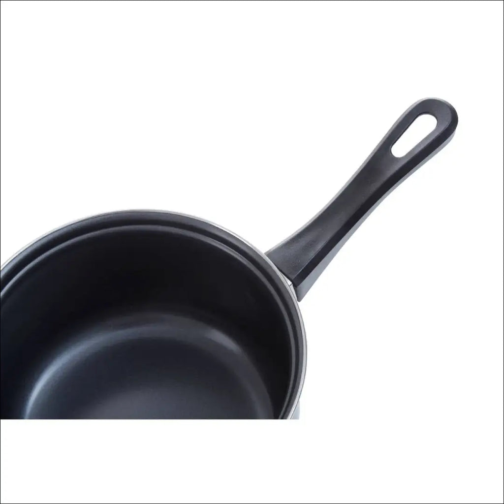 Šis penkių dalių nelimpančių anglinio plieno pilkų virtuvės reikmenų rinkinys su bakelitinėmis rankenomis, kuriame yra 14 cm pieno puodas, 16/18/20 cm puodai ir 24 cm keptuvė, bus puikus jūsų virtuvės papildymas; Galima plauti indaplovėje; Netinka indukcinei kaitlentei; “Premier Housewares”; Siuntimo pakuotė gali būti ne originali, prekė siunčiama pilnai arba dalinai surinkta; |
