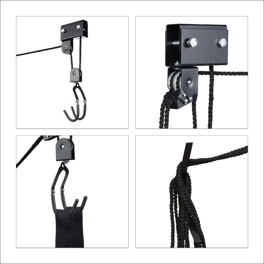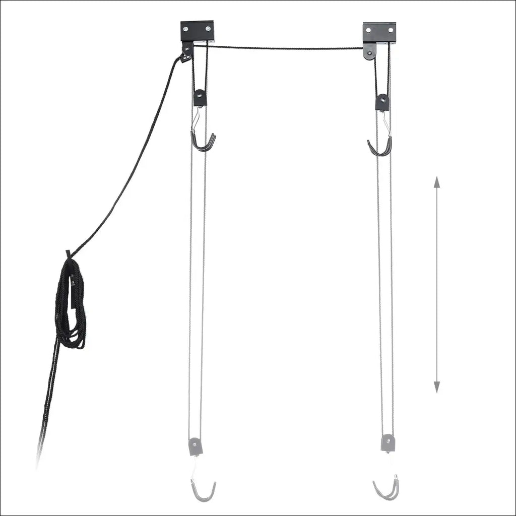 - Su keltuvu: tiesiog pakabinkite dviratį ir patraukite aukštyn – švelnus nugarai – bendras virvės ilgis apie 14 m
