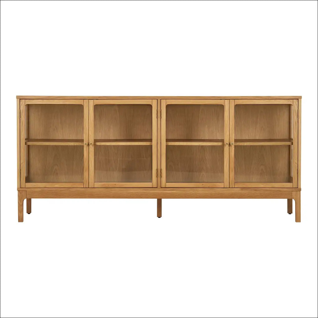 Komoda, 4 stiklinės durelės, 1 lentyna, ąžuolas/ąžuolo fanera/grūdintas stiklas, natūrali, 40x180x80 cm RD529