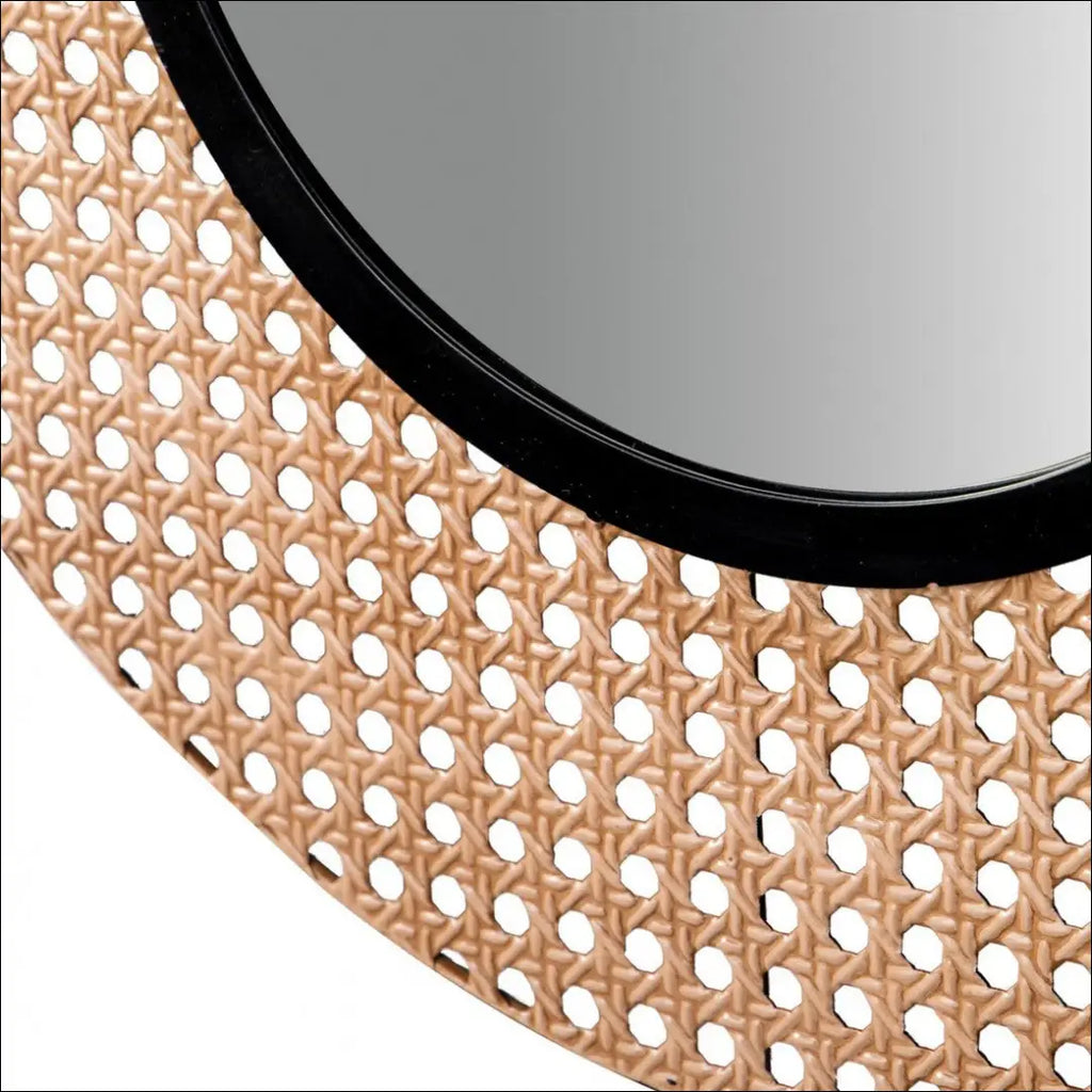 Elegantiškas apskritas veidrodis su etniniu įkvėpimu, su juodu metaliniu krašteliu ir metaline tinklelio struktūra, imituojančia vyteles; Veidrodžiai yra įdomūs dekoratyviniai aksesuarai tiek dėl savo funkcionalumo, tiek dėl dekoratyvių efektų bei šviesos ir gylio žaidimų, kuriuos sukuria bet kokiame dekore; Veidrodis turi laikiklį nugaroje, kad būtų galima tinkamai pritvirtinti; “Garpe Interiores”; Siuntimo pakuotė gali būti ne originali, prekė siunčiama pilnai arba dalinai surinkta. |