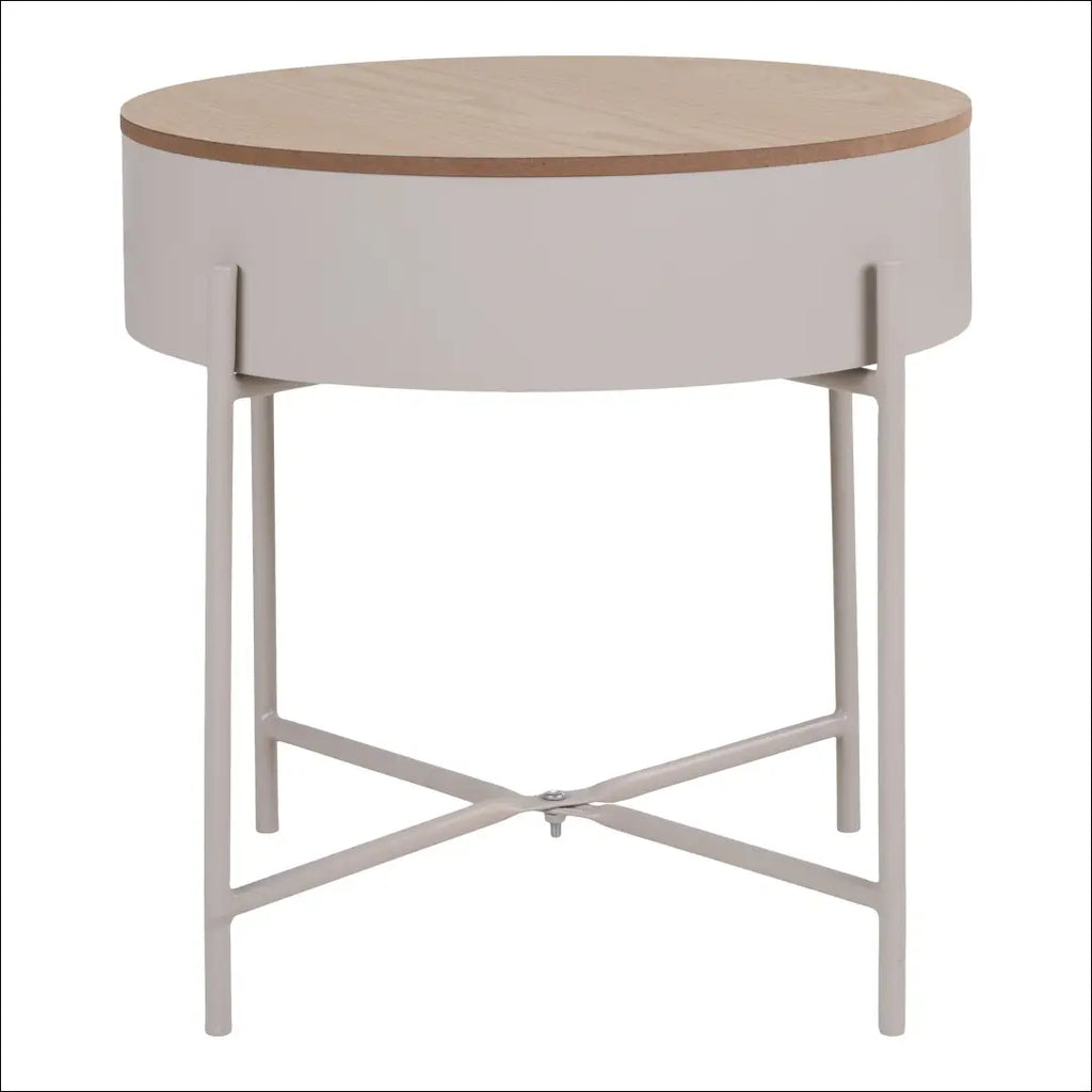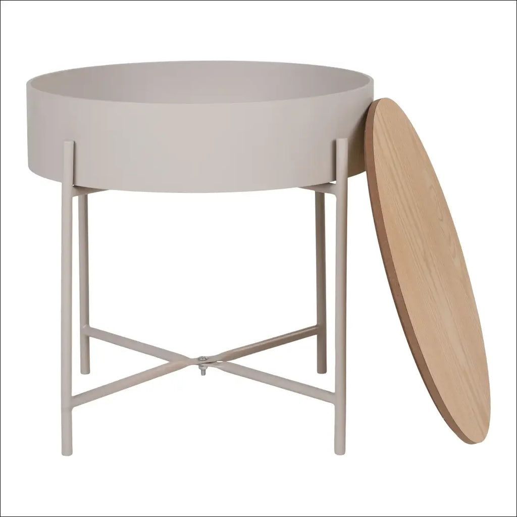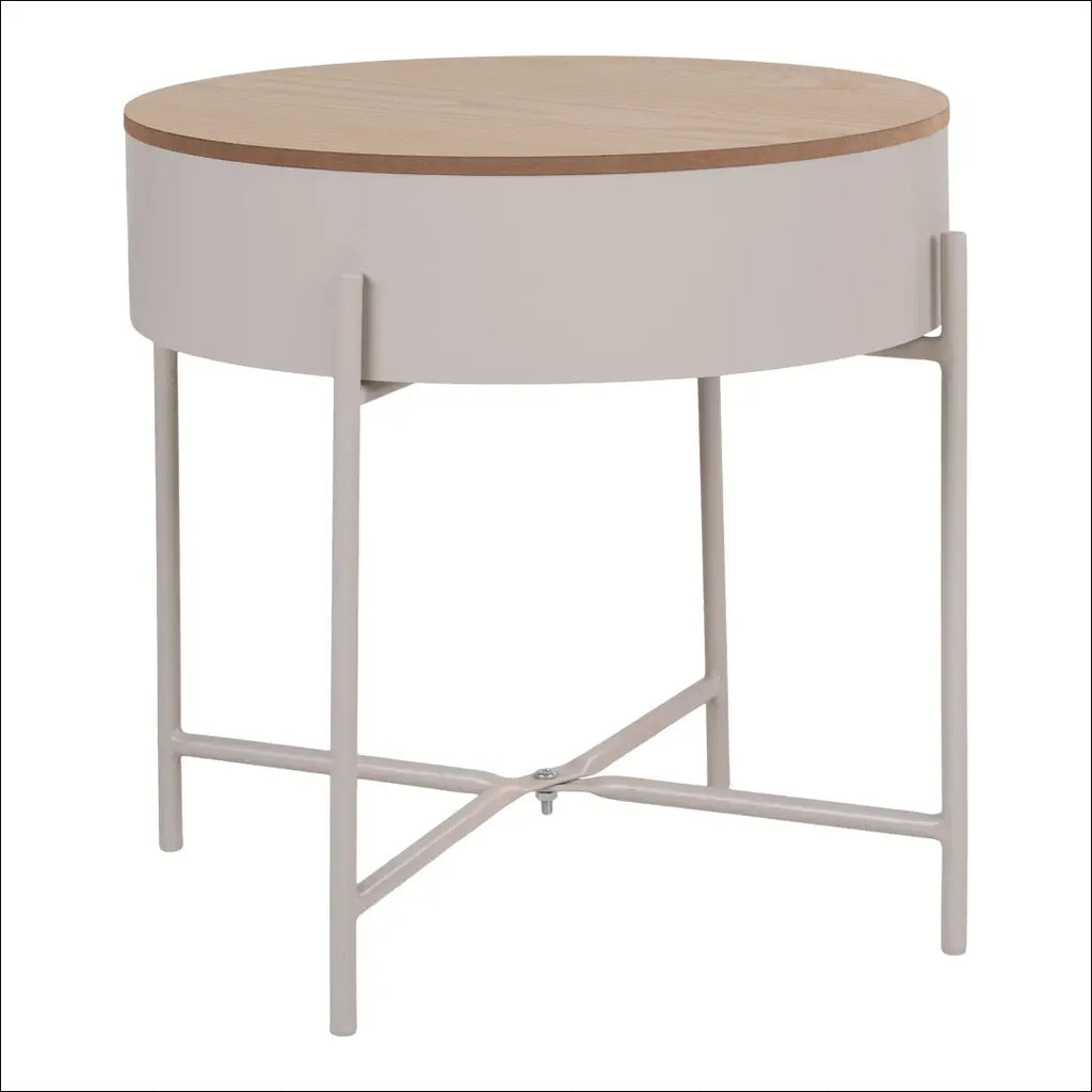 Šoninis staliukas, smėlio spalvos plienas, natūralus stalviršis, ø40x40 cm RD738