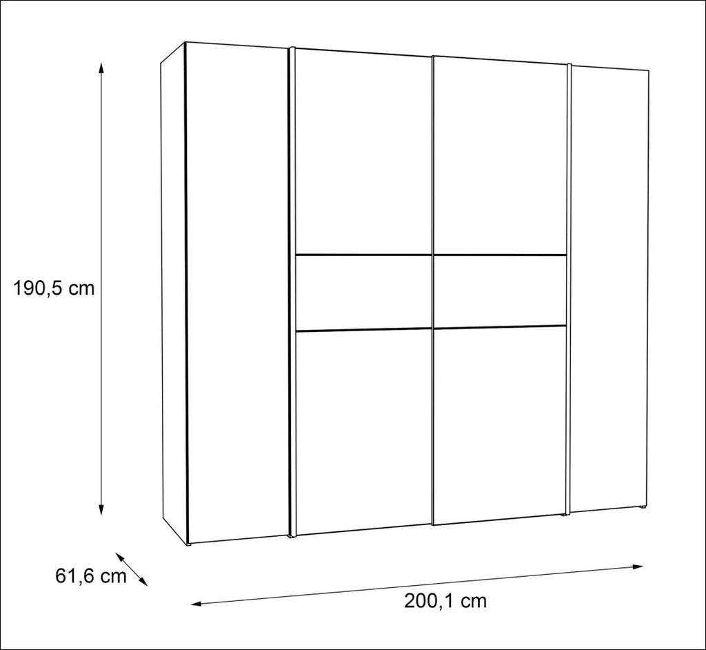 190,5 cm aukštis x 200,1 cm plotis x 61,6 cm gylis |