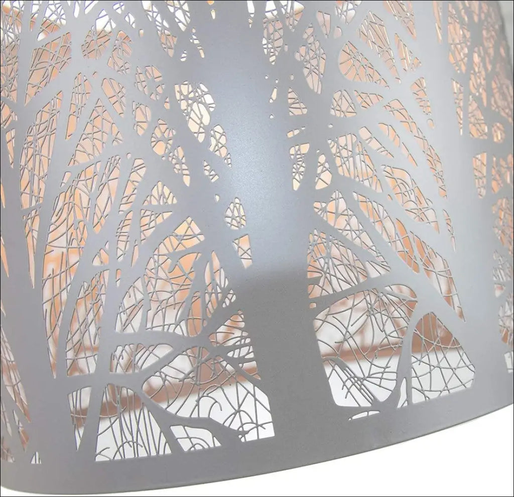 Įneškite gamtos grožį į namus su šiuo unikaliu, lengvai montuojamu pakabinamu šviestuvo gaubtu. Pagamintas iš metalo ir nudažytas švelniai pilkais matiniais dažais, sudėtingas medžio ir šakų raštas sukuria akį traukiantį akcentą. Apšviesta šviesa sklinda pro subtilius tarpelius, ant sienų ir lubų projektuodama nuostabų miško siluetą; “Happy Homewares”; Siuntimo pakuotė gali būti ne originali, prekė siunčiama pilnai arba dalinai surinkta; |