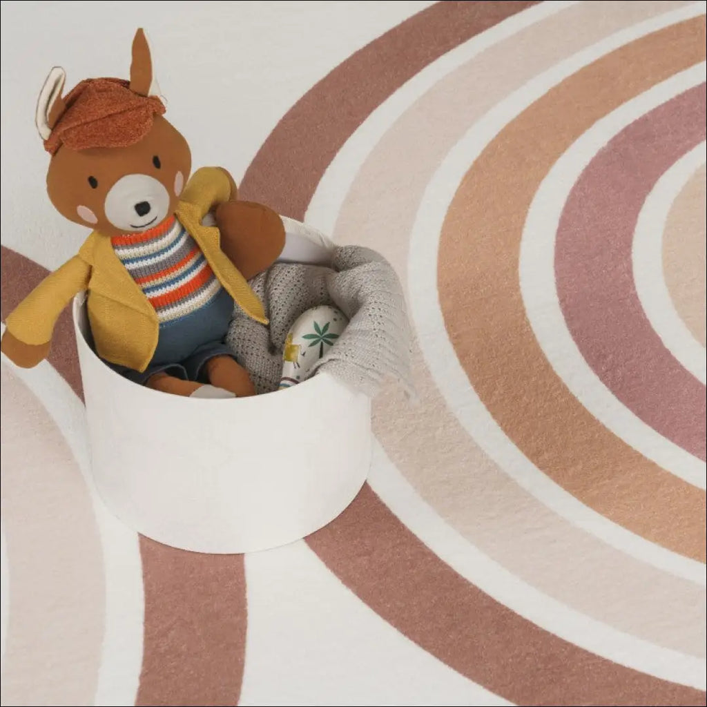 Skalbiamas vaivorykštės raštas vaikų kambario kilimui