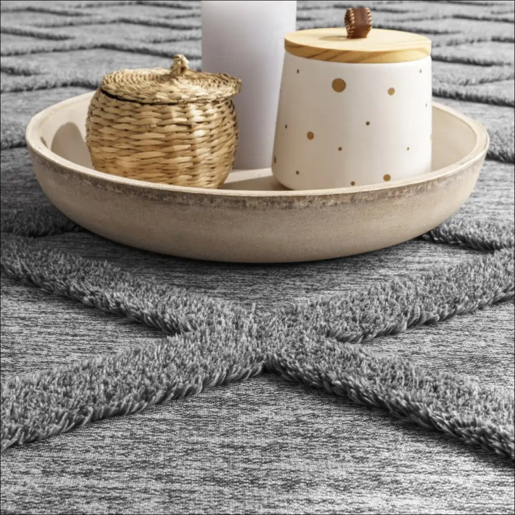 Svetainės kiliminė danga skandinaviško boho deimantų motyvas
