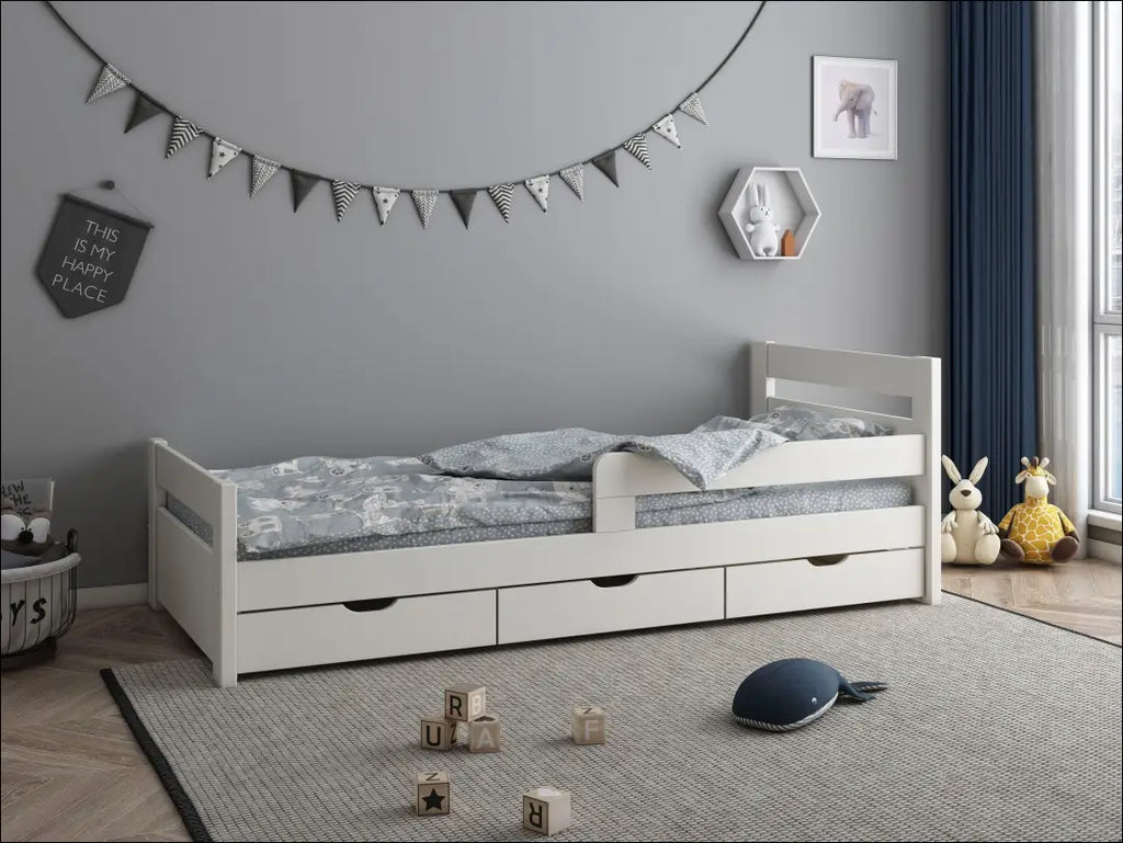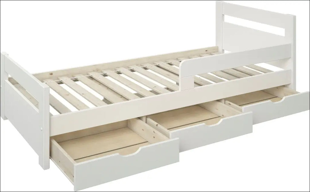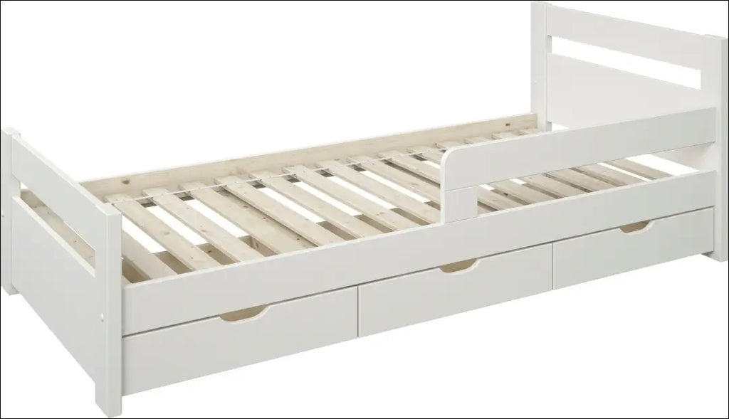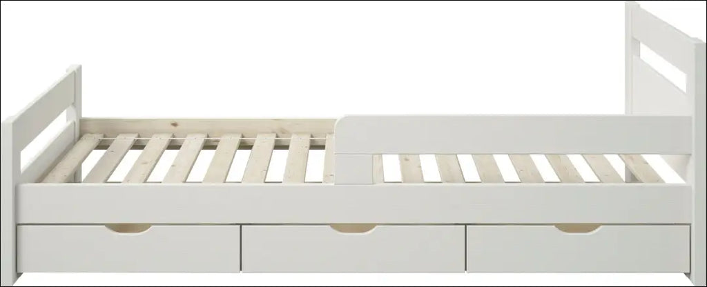 Daug vietos daiktams susidėti dėl 3 praktiškų stalčių – idealiai tinka bet kokiems namams; Apsauga nuo kritimo gali būti montuojama iš abiejų pusių; Su grotelėmis, čiužinys nepridedamas; Keliamoji galia - 90 kg; “Corrigan Studio”; Siuntimo pakuotė gali būti ne originali, prekė siunčiama pilnai arba dalinai surinkta; |