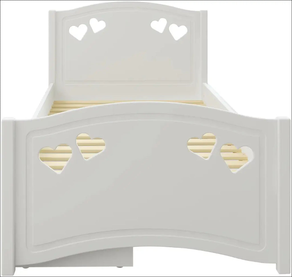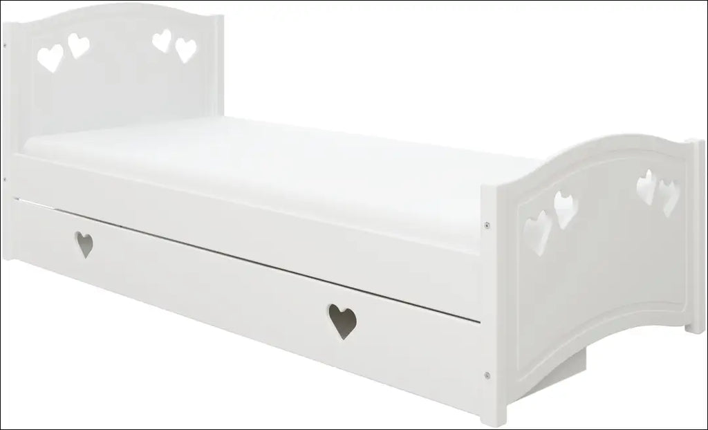 Su gražiais dekoratyviniais širdies formos frezavimais; Į komplektą įeina čiužinys, grotelių rėmas ir patalynės dėžė daiktams laikyti. Užvalkalas nuimamas ir skalbiamas. Dvigubo džersio audinys, svoris 200 g/m². Čiužinio užvalkalas - 65% poliesterio, 35% viskozės; Keliamoji galia - 100 kg; Putplasčio čiužinys (H2); „Lüttenhütt“; Siuntimo pakuotė gali būti ne originali, prekė siunčiama pilnai arba dalinai surinkta; |