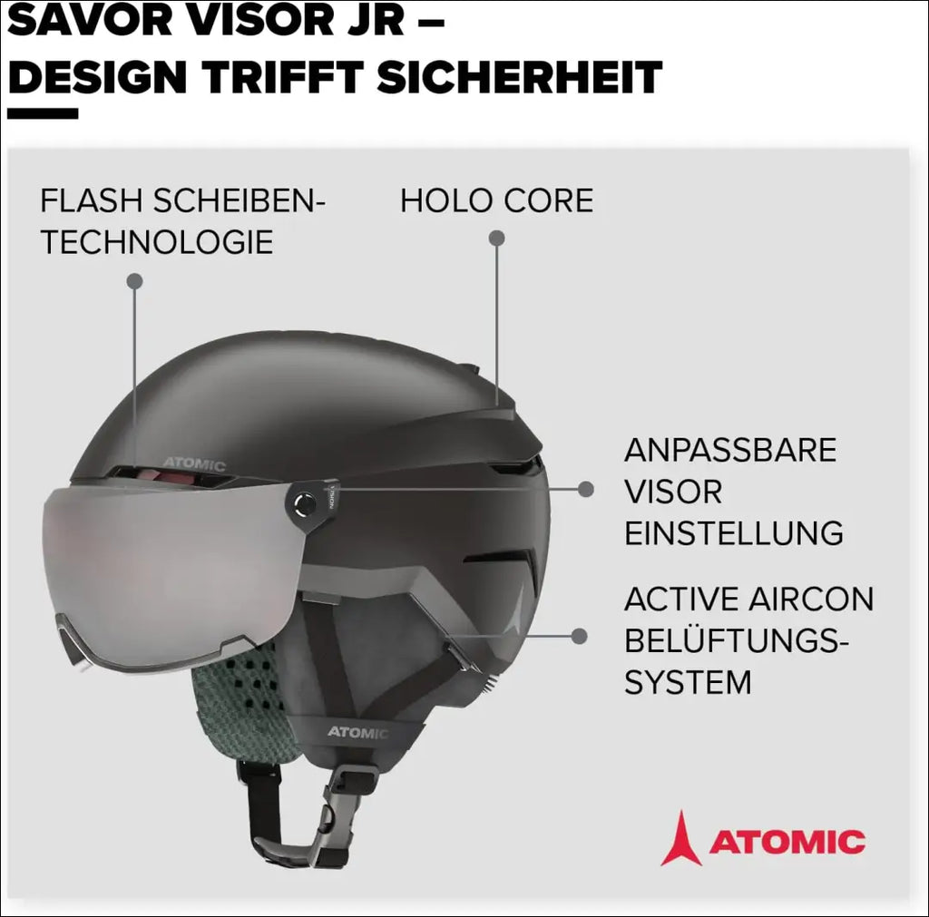 Svarbiausia – derinys: mūsų šalmas su integruotais slidinėjimo akiniais sujungia du esminius slidinėjimo įrangos komponentus ir garantuoja, kad jūsų vaikams bus smagu slidinėti. Saugios žiemos pramogos: unikali slidinėjimo šalmų „Holo Core“ konstrukcija suteikia daugiau saugumo – iki 30 % daugiau apsaugos smūgio atveju nei saugos standartas. Blykstės technologija: aukščiausios klasės akinių veidrodinė danga užtikrina aukščiausios klasės apsaugą nuo akinimo ir aiškų matymą. Šiuo tikslu skydelį galima reguliuoti iki 8 mm. Novatoriškos detalės: dėl „Active Aircon“ slidinėjimo šalmai turi moderniausią mūsų vėdinimo sistemą, o dėl „Live Fit“ technologijos juos patogu dėvėti – išskirtinai. “Atomic”; Siuntimo pakuotė gali būti ne originali, prekė siunčiama pilnai arba dalinai surinkta; |