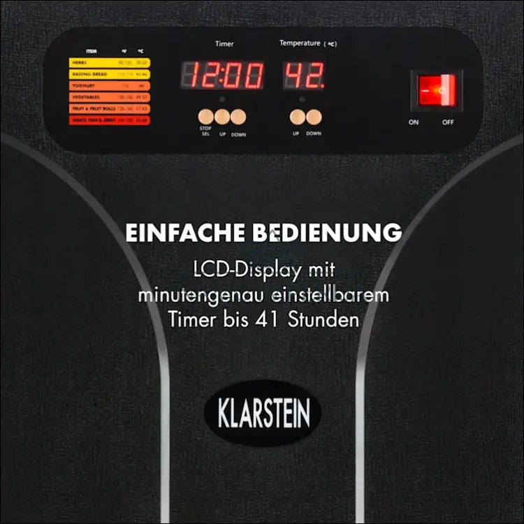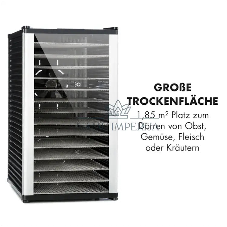 Sveiki, skanūs užkandžiai dideliais kiekiais: su „Klarstein Fruit Jerky 14“ džiovykle galite greitai ir lengvai išdžiovinti maistą 14 lygių. Nesvarbu, ar tai vaisiai, daržovės, mėsa, ar žolelės, cirkuliuojančio oro džiovyklė švelniai ištraukia vandenį iš maisto produktų, naudodama 1000 vatų galią ir 30–70 °C temperatūrą, išsaugodama juos be jokių priedų. Dėl savo dydžio ir galios „Fruit Jerky 14“ taip pat idealiai tinka komerciniam naudojimui; Galingas, didelis ir gerai matomas: su „Klarstein Fruit Jerky 14“ džiovykle per trumpą laiką galite pagaminti daug džiovintų produktų! Temperatūros diapazonas: 30–70 °C; 14 metalo džiovinimo lygių; Reguliuojama temperatūra 1 °C žingsniais; Laikmatis: reguliuojamas iki 41 valandos; Paprastas valdymas mygtukais; LCD ekranas; Neslystančios guminės kojelės; Įjungimo/išjungimo jungiklis viršuje; “Klarstein”; Siuntimo pakuotė gali būti ne originali, prekė siunčiama pilnai arba dalinai surinkta; |