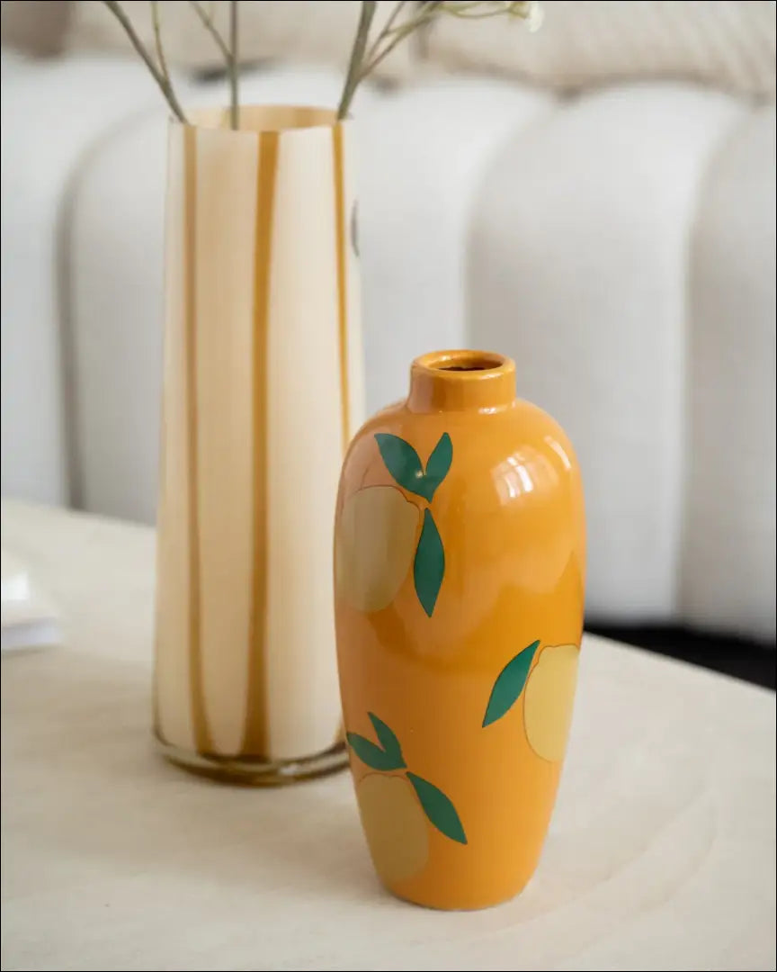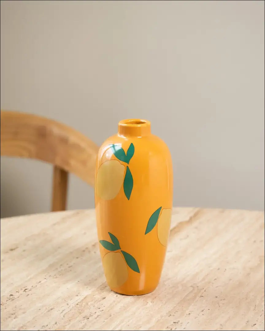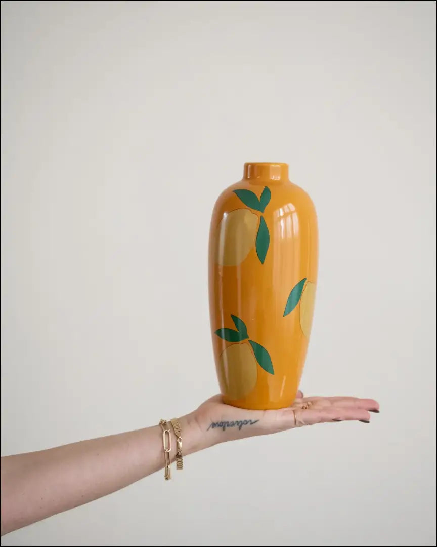 Ryškiai oranžinė vaza su nupieštomis citrinomis. Kiekvienam namo kambariui suteikia linksmą atmosferą! “Thingsilikethingsilove”; Siuntimo pakuotė gali būti ne originali, prekė siunčiama pilnai arba dalinai surinkta. |