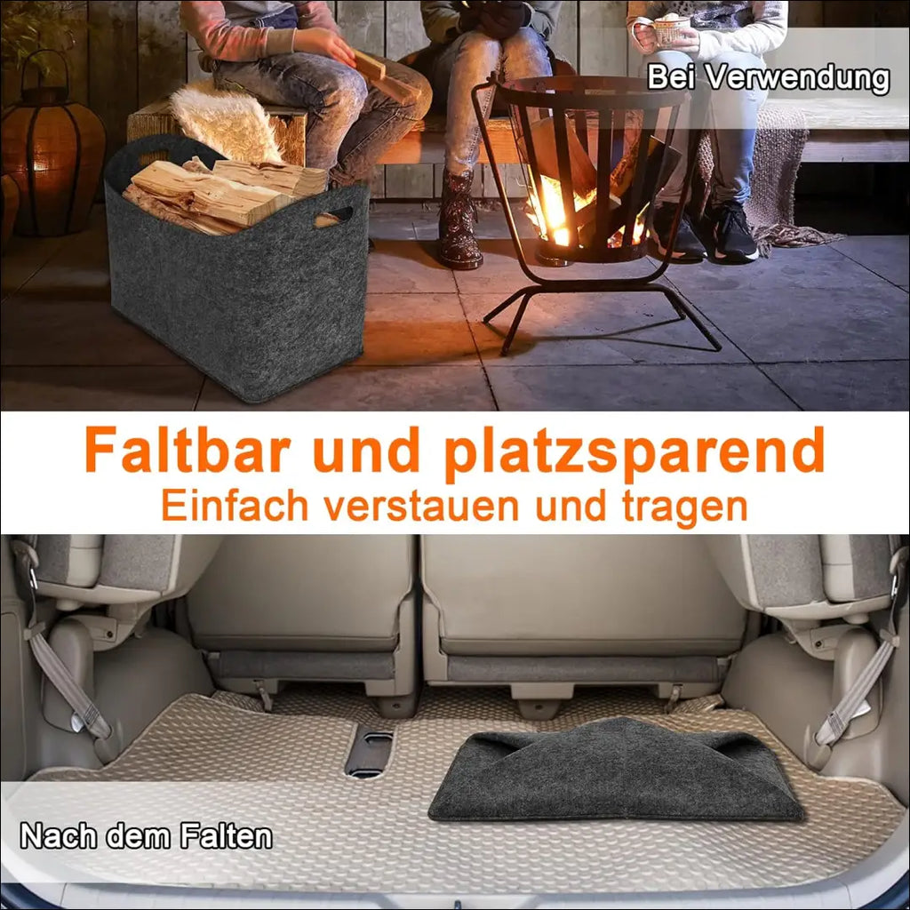 2 veltinio židinio malkų maišai - matmenys: 55 x 30 x 40 cm, veltinio medžiagos storis yra apie 5,0 mm, o siūlės sutvirtintos, veltinio maišas yra labai tvirtas ir patvarus, gali atlaikyti maksimalią 60 kg apkrovą. Sulankstomas malkų krepšys – malkų krepšį galima sulankstyti, kad būtų sutaupyta vietos. Kai nenaudojamas, jį lengva laikyti ir transportuoti. Veltinis pirkinių krepšys taip pat gali būti naudojamas kaip dovanų krepšelis arba maišelis grąžinamiems buteliams. “Garten Living”; Siuntimo pakuotė gali būti ne originali, prekė siunčiama pilnai arba dalinai surinkta; |