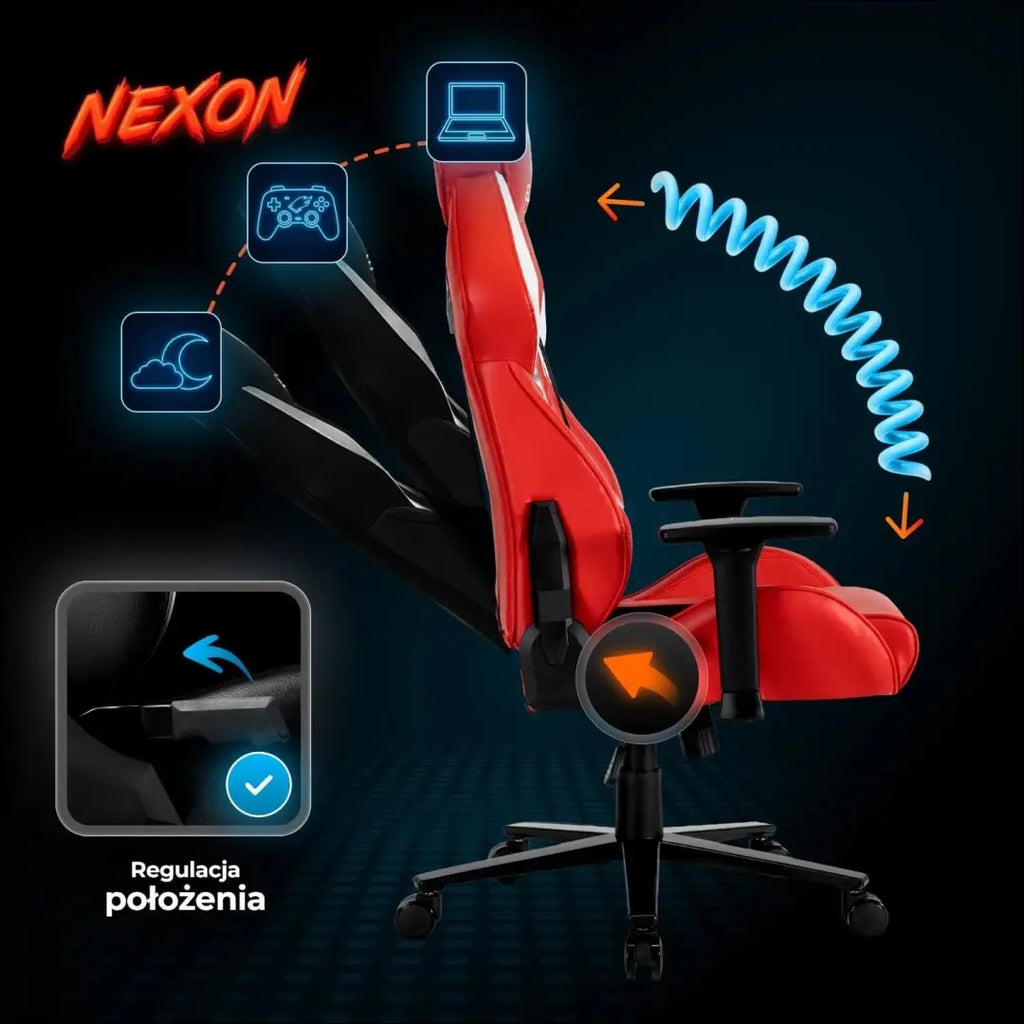 Medžiaga - Ekologinė oda, Spalva - Raudoni ir bordo, Porankiai - Taip, Kojų atrama - Ne, Stilius - Modernus, Korpuso spalva - juoda, Korpuso medžiaga - plastikas, Gylis - 70 cm, Plotis - 75 cm, Aukštis - 125-141 cm, Sėdynės plotis - 125-141 cm, Sėdynės plotis - izmas -58 cm, Sėdynės -izmas - 58 cm. TILT, Ratukai - guminiai, Sėdynės aukštis - 46 cm, Min. porankio aukštis - 61 cm, Atlošo plotis - 53 cm, Sėdynės storis - 11 cm, Atlošo aukštis - 86 cm, Maksimalus porankio aukštis - 78,5 cm, Porankio plotis - 9 cm
