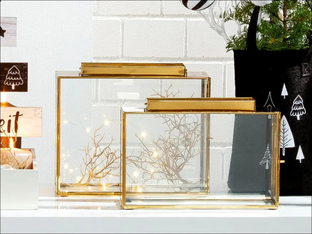 Stačiakampis aukso spalvos metalinis žibintas su stiklu ir atidaromomis durelėmis; “Gilde”; Siuntimo pakuotė gali būti ne originali, prekė siunčiama pilnai arba dalinai surinkta; |