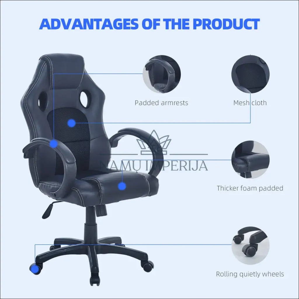 Pastaba. Siūlės yra juodos. Madingas ir modernus dizainas. Ši kėdė leidžia žmonėms ilgai sėdėti ir jaustis patogiai; Visa kėdė gali suptis pirmyn ir atgal, maloni supimo funkcija; Keliamoji galia - 130 kg; “Inbox Zero”; Siuntimo pakuotė gali būti ne originali, prekė siunčiama pilnai arba dalinai surinkta; |