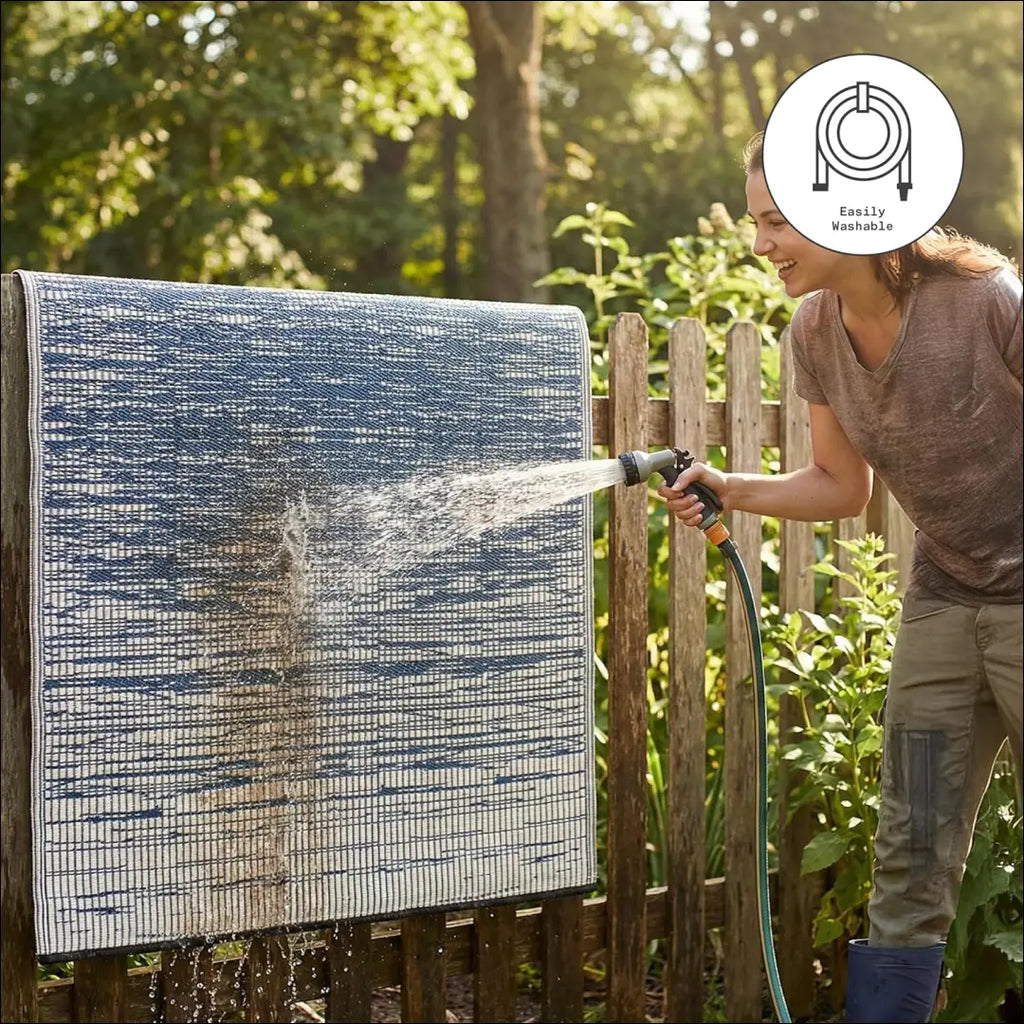 Lengva valyti – tiesiog išpurtykite ir nuvalykite. Kruopštesniam valymui puikiai tiks sodo žarna; Pridedamas džiuto pečių krepšys. Su juo galėsite lengvai nešiotis kilimėlį į paplūdimį, stovyklavietę ar iškylą; |