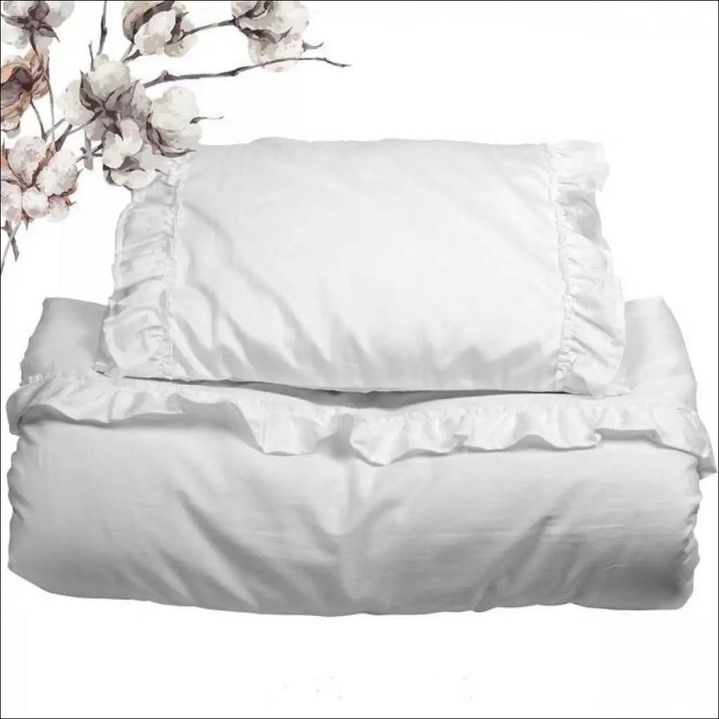 оборки шириной 7 см на пододеяльниках и наволочках; Машинная стирка при 60 градусах. Можно выворачивать наизнанку; Сатин шелковистый и прохладный, что делает его приятным для кожи ребенка. |
