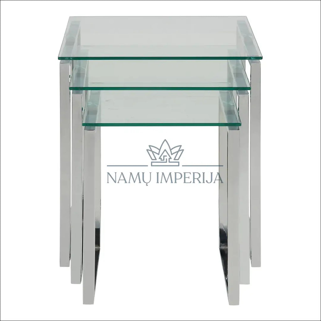 Papuoškite savo erdvę mūsų elegantiškais ir moderniais staliukais. Šis universalus trijų staliukų komplektas, turintis skaidrų grūdinto stiklo stalviršį ir stilingą chromuoto plieno pagrindą, sklandžiai sujungia funkcionalumą ir eleganciją; “Canora Grey”; Siuntimo pakuotė gali būti ne originali, prekė siunčiama nesurinkta. |