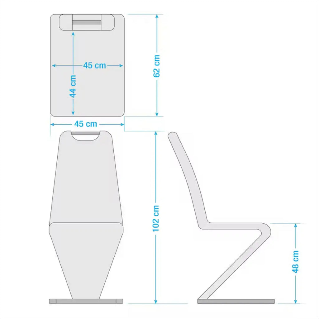 102 см высота x 45 см ширина x 62 см глубина Высота до сиденья - 48 см. |