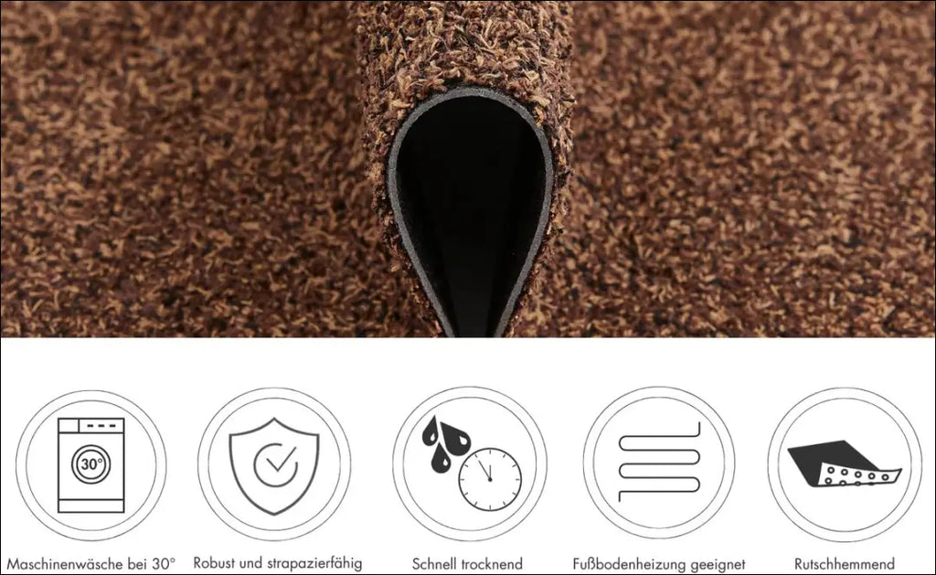 Придверный коврик впитывает всю влагу и грязь, которую вы переносите на обуви, поэтому ничто не попадет в ваше жилое пространство. Резиновая основа предотвращает скольжение коврика и обеспечивает надежное сцепление, когда вам нужно быстро передвигаться. Крупную грязь можно удалить, встряхнув или пропылесосив коврик; если коврик очень грязный, его можно постирать в стиральной машине при температуре 30 °C. Придверный коврик подходит не только для использования внутри помещений и на крытых открытых площадках или на террасе, но также может использоваться, например, в передвижном доме, гараже или в качестве коврика для кормления домашних животных. |