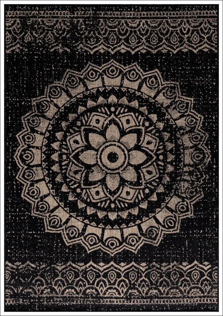 Коврик для улицы/террасы, винтажный дизайн, Основной цвет: Черный, бежевый Коврик можно использовать на террасе, балконе, Состав подложки - Полипропилен, Различные размеры