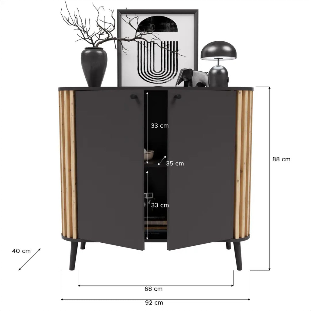 2 durys, 2 skyriai; Dizainas: pilki fasadai su „Artisan Oak“ spalvos akcentu; Baldai pagaminti iš FSC® sertifikuotos medienos, siekiant apsaugoti miškus; “Xonox Home”; Siuntimo pakuotė gali būti ne originali, prekė siunčiama pilnai arba dalinai surinkta; |