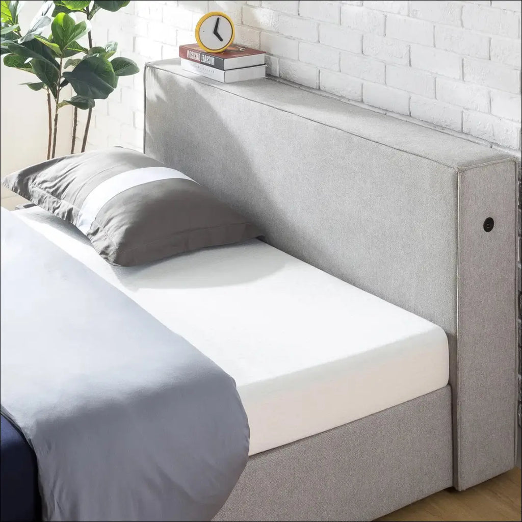 Эта мягкая серая обивка кровати, созданная для заботы о вас и ваших устройствах, оснащена удобной полкой в изголовье шириной 19 см и 4 USB-портами, встроенными прямо в изголовье, чтобы сделать ваш отдых в постели еще более приятным; С грилем; «Зинус»; Упаковка для транспортировки может быть не оригинальной, товар поставляется в полностью или частично собранном виде; |