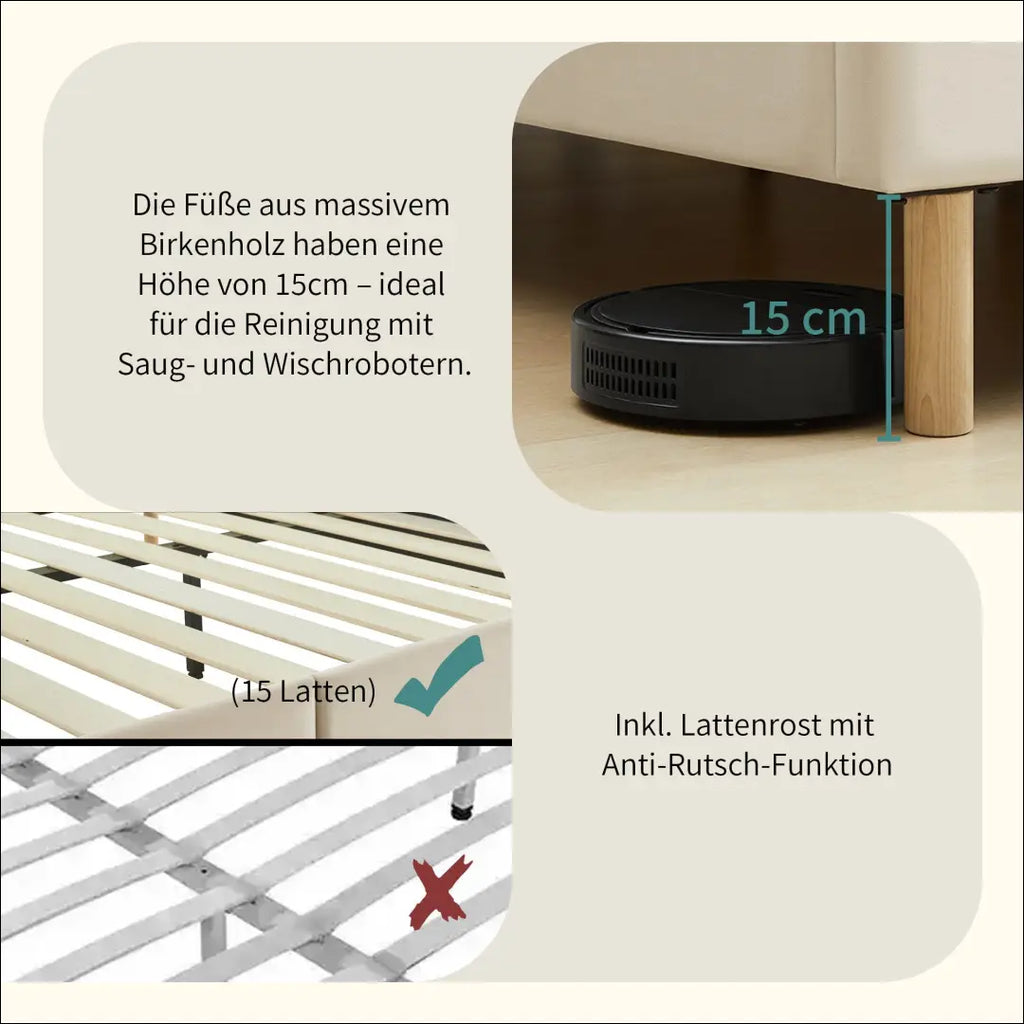 Velvetinis apmušalų audinys: sukuria trimatį lovos galvūgalio dizainą, kuris yra stilingas ir malonus liesti. Beržo medienos masyvo kojelės: užtikrina stabilumą ir ilgaamžiškumą, įskaitant veltinio slydimus, apsaugančius grindis nuo įbrėžimų ir nusidėvėjimo. Grotelių lovos pagrindas su neslystančia funkcija: užtikrina stabilų čiužinio palaikymą ir apsaugo nuo slydimo, kad miegas būtų ramus. Galvūgalio aukštis 100 cm: užtikrina optimalų komfortą sėdint ir skaitant lovoje, idealiai tinka ramiems vakarams ir jaukioms valandoms. Su grotelėmis, čiužinys nepridedamas; “Home Affaire”; Siuntimo pakuotė gali būti ne originali, prekė siunčiama pilnai arba dalinai surinkta; |