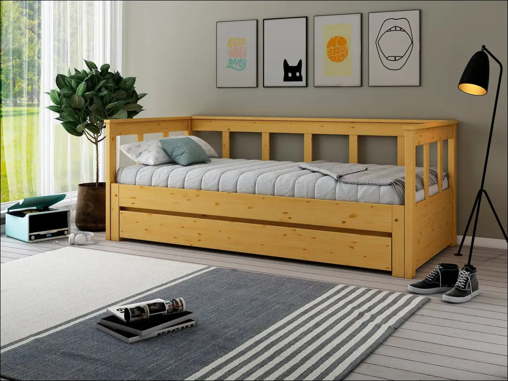 Praktiška – su ištraukiamu gulėjimo paviršiumi, stalčius nepridedamas; Su grotelėmis, čiužinys nepridedamas; FSC® sertifikuota mediena; Keliamoji galia - 180 kg; “Brayden Studio”; Siuntimo pakuotė gali būti ne originali, prekė siunčiama pilnai arba dalinai surinkta; |