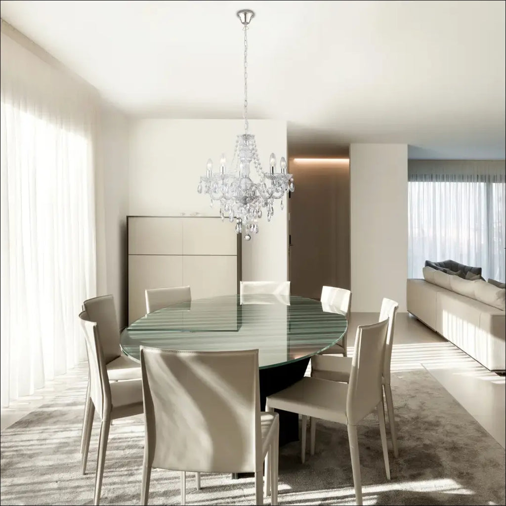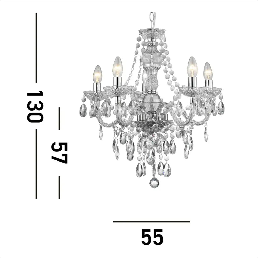 Эта пятиламповая люстра излучает винтажную элегантность и добавляет очарования вашему интерьеру. Стеклянный каркас люстры украшен лампами-свечками в сочетании с подвесками из хрусталя и привлекательным силуэтом. Регулируемая высота и функция диммирования обеспечивают более точное управление освещением. Лампочки в комплект не входят. 5 лампочек E14 60 Вт (не входят в комплект); IP20; "Прожектор"; Упаковка для транспортировки может быть не оригинальной, товар поставляется в полностью или частично собранном виде; |
