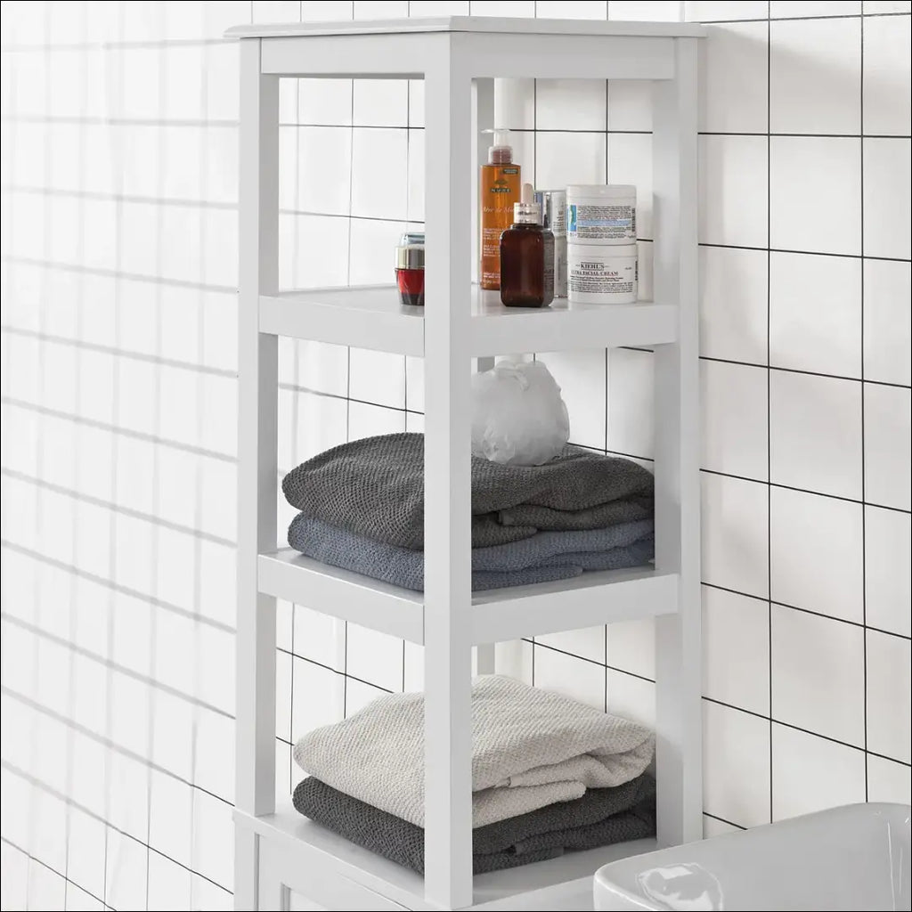 Этот высокий шкаф имеет вневременной дизайн. Открытые отделения и полки за дверцами обеспечивают достаточно места для хранения вещей. Этот вместительный шкаф для ванной идеально подходит для хранения полотенец, туалетных принадлежностей и других принадлежностей. Он быстро и легко собирается и будет стильно смотреться в вашей ванной комнате. Он изготовлен из прочной и легко моющейся плиты МДФ. «Ежевичный коттедж»; Упаковка для транспортировки может быть не оригинальной, товар поставляется в полностью или частично собранном виде; |
