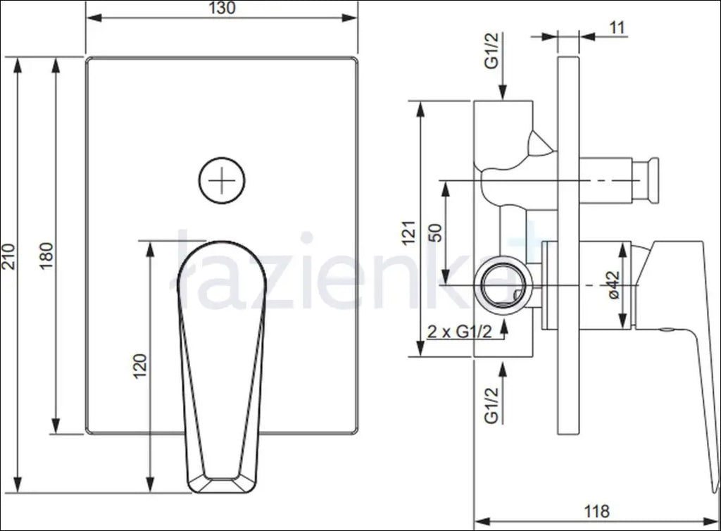 «ОМНИРЕС»; Термостат: НЕТ; Минимальная глубина в стене для установки смесителя: 6,5 см; Два выхода смешанной воды и два входа: для горячей и холодной воды - в комплект входит скрытый элемент - подключение: 1/2 дюйма - низкое давление 3,5 см; |