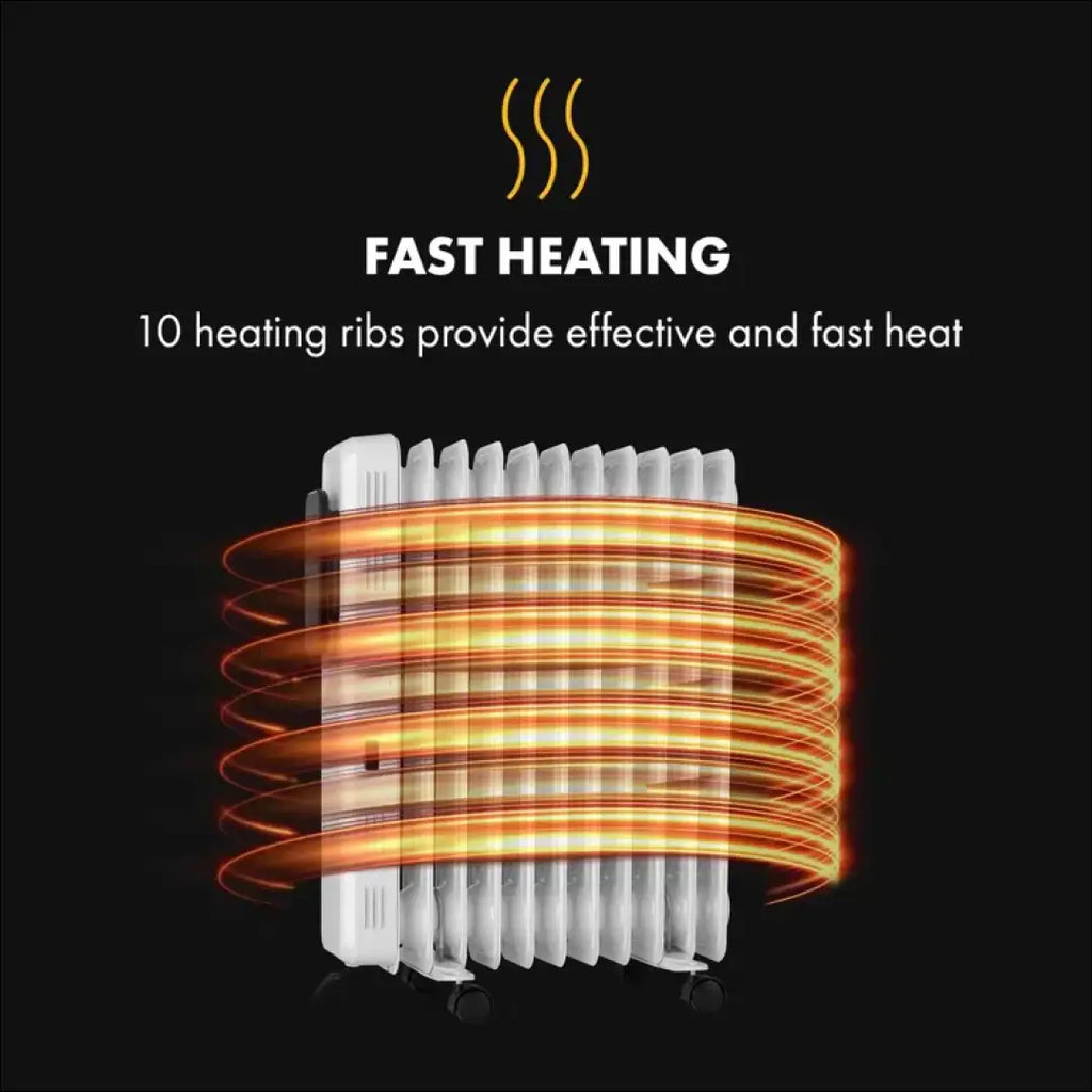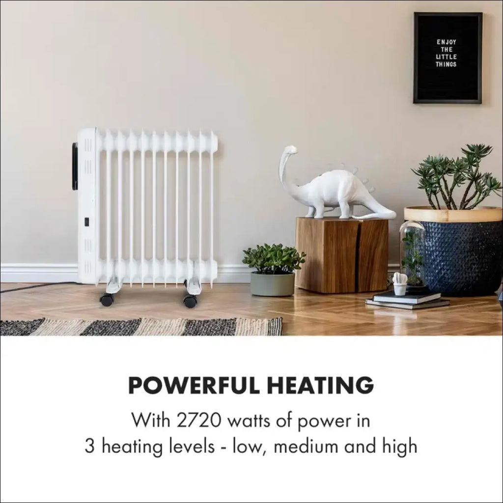 Это компактный, простой в использовании масляный радиатор, обеспечивающий комфортную температуру в любом помещении. Мощность нагрева 2720 Вт нагревается мгновенно и обеспечивает надежный и равномерный нагрев в диапазоне температур 7–35 °C с 3 уровнями нагрева. Масляный радиатор очень прост в эксплуатации: с помощью цифрового дисплея и электронного контроллера вы всегда можете просмотреть изображение и легко установить нужный уровень нагрева, температуру и функцию таймера. Вы также можете легко управлять им через приложение. 10 нагревательных кромок обеспечивают не только очень большую поверхность нагрева, но и лучшую циркуляцию воздуха для чрезвычайно быстрого нагрева воздуха в помещении. Встроенная функция защиты от замерзания автоматически активируется, когда температура падает ниже 5°C. Благодаря 24-часовому таймеру включения/выключения вы можете спать спокойно и расслабленно, пока маслоохладитель еще работает: он надежно отключается по истечении выбранного времени. Для мобильного использования небольшой вес и 4 опорных колеса обеспечивают легкое перемещение электронагревателя. Быстрая приятная температура в комнате или офисе, мастерской или гараже: масляный радиатор – преимущество для каждого дома! Транспортировочная упаковка может не быть оригинальной, товар отправляется в полностью или частично собранном виде. |