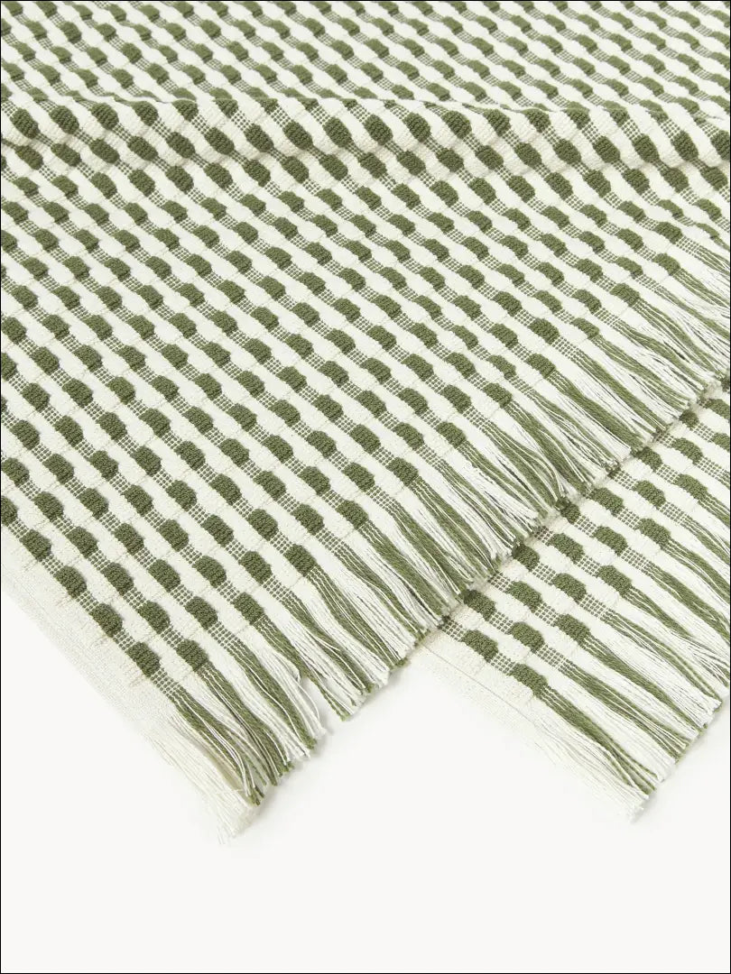 Уютные полотенца с уникальным фактурным узором и декоративной бахромой. Идеально подходят для создания стильных акцентов в ванной комнате. Комплект полотенец с бахромой без петель для подвешивания состоит из гостевого полотенца, полотенца для рук и банного полотенца. Произведено в Португалии. 600 г/м²; Материал, используемый в этом изделии, проверен на наличие вредных веществ и сертифицирован в соответствии со стандартом 100 OEKO-TEX®, 3883CIT, CITEVE; Рекомендуемая температура стирки — не выше 40 °С; Упаковка для транспортировки может быть не оригинальной, товар поставляется в полностью или частично собранном виде; |