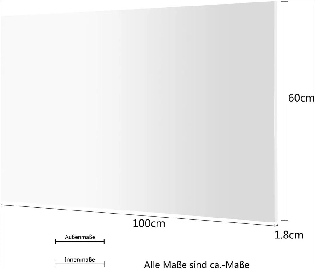 60 cm aukštis x 100 cm plotis x 1,8 cm gylis |