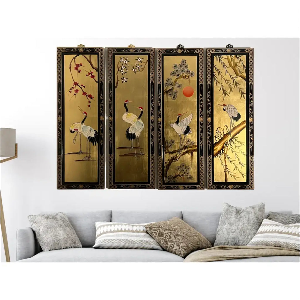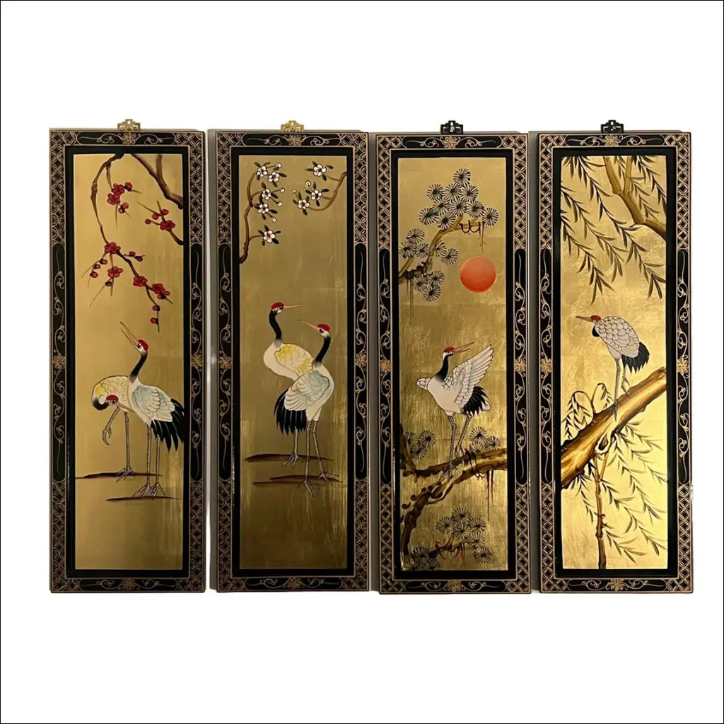 Это настенное панно из четырёх панелей расписано вручную по эксклюзивной технологии Cranes Artistry. Мерцающая золотая фольга, меняющая оттенок в зависимости от освещения, идеально подходит для оживления нейтрального интерьера или создания галерейной экспозиции. «Этта Авеню»; Упаковка для транспортировки может быть не оригинальной, товар поставляется в полностью или частично собранном виде; |
