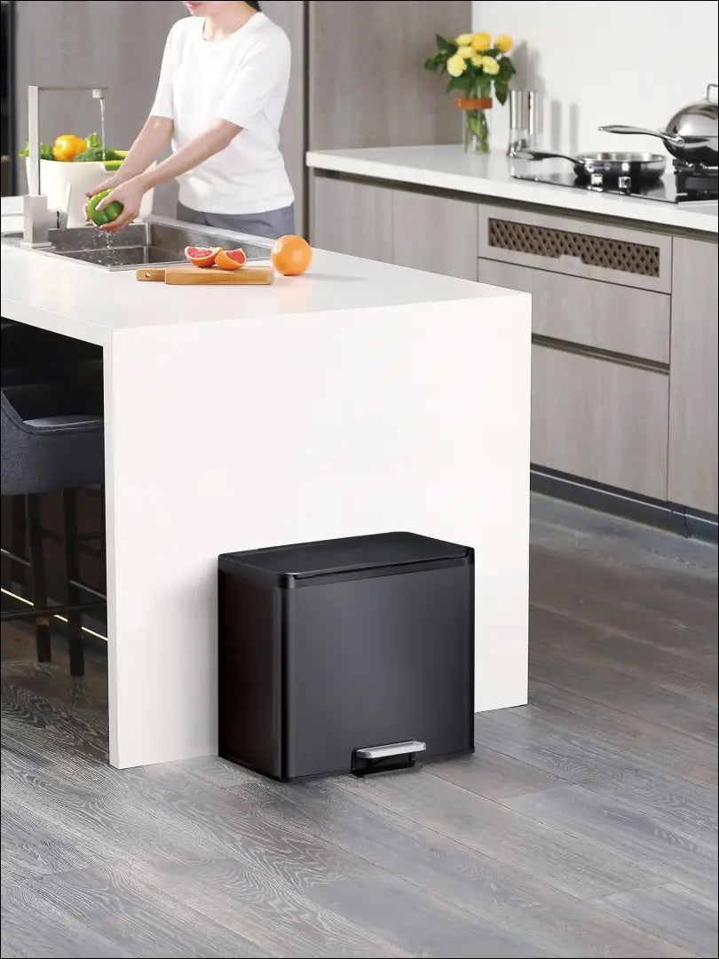 Мусорный контейнер для сортировки отходов с плавно закрывающейся крышкой. Функция Stay-Open позволяет легко очищать контейнер и менять мешок. Кроме того, изделие покрыто слоем нержавеющей стали, устойчивым к отпечаткам пальцев. «ЭКО»; Упаковка для транспортировки может быть не оригинальной, товар поставляется в полностью или частично собранном виде; |