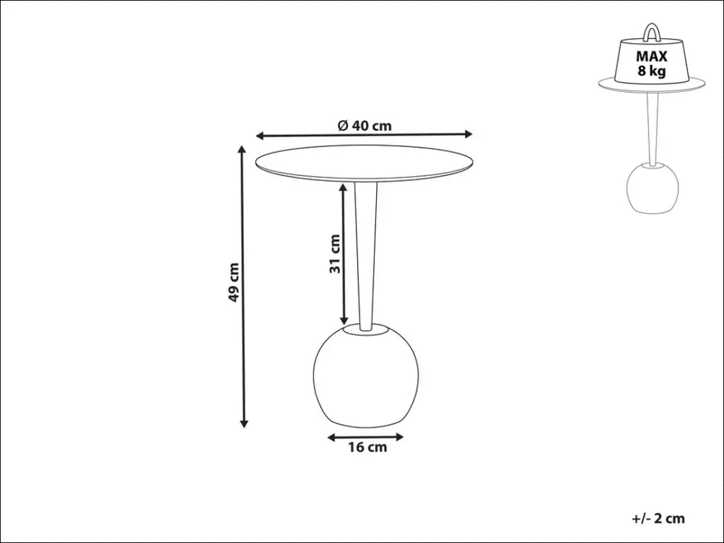 Šis minimalistinis šoninis staliukas yra puikus ir neįprastas bet kokio modernaus ir skandinaviško stiliaus interjero papildymas. Miegamajame jis puikiai tiks naktinei lempai ir nuotraukų rėmeliui, o svetainėje – žurnalams ar knygoms. Pagamintas iš patvaraus aliuminio, nereikalauja ypatingos priežiūros, yra stabilus ir tvirtas; Keliamoji galia - 8 kg; “Beliani”; Siuntimo pakuotė gali būti ne originali, prekė siunčiama pilnai arba dalinai surinkta; |