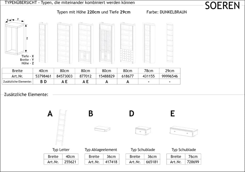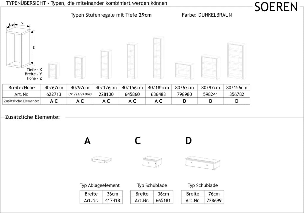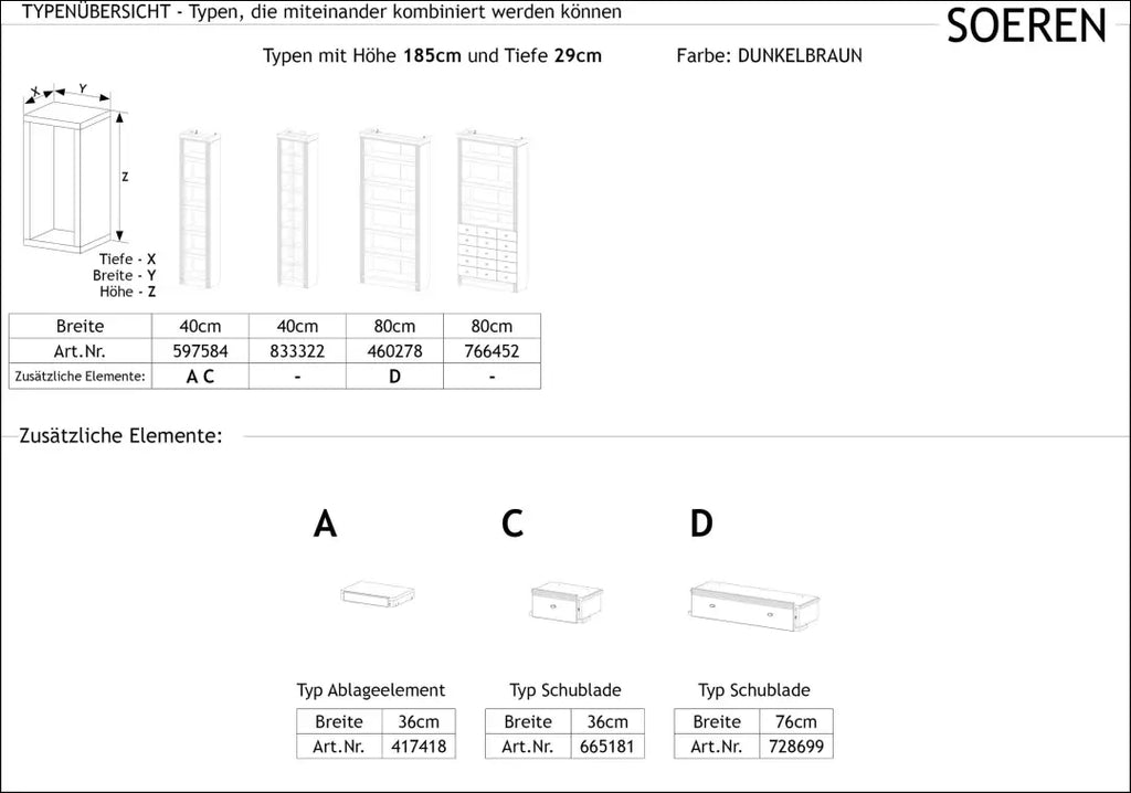 Stalčius telpa į 29 cm gylio „Soeren“ lentynas; “Home Affaire”; Siuntimo pakuotė gali būti ne originali, prekė siunčiama pilnai arba dalinai surinkta; |