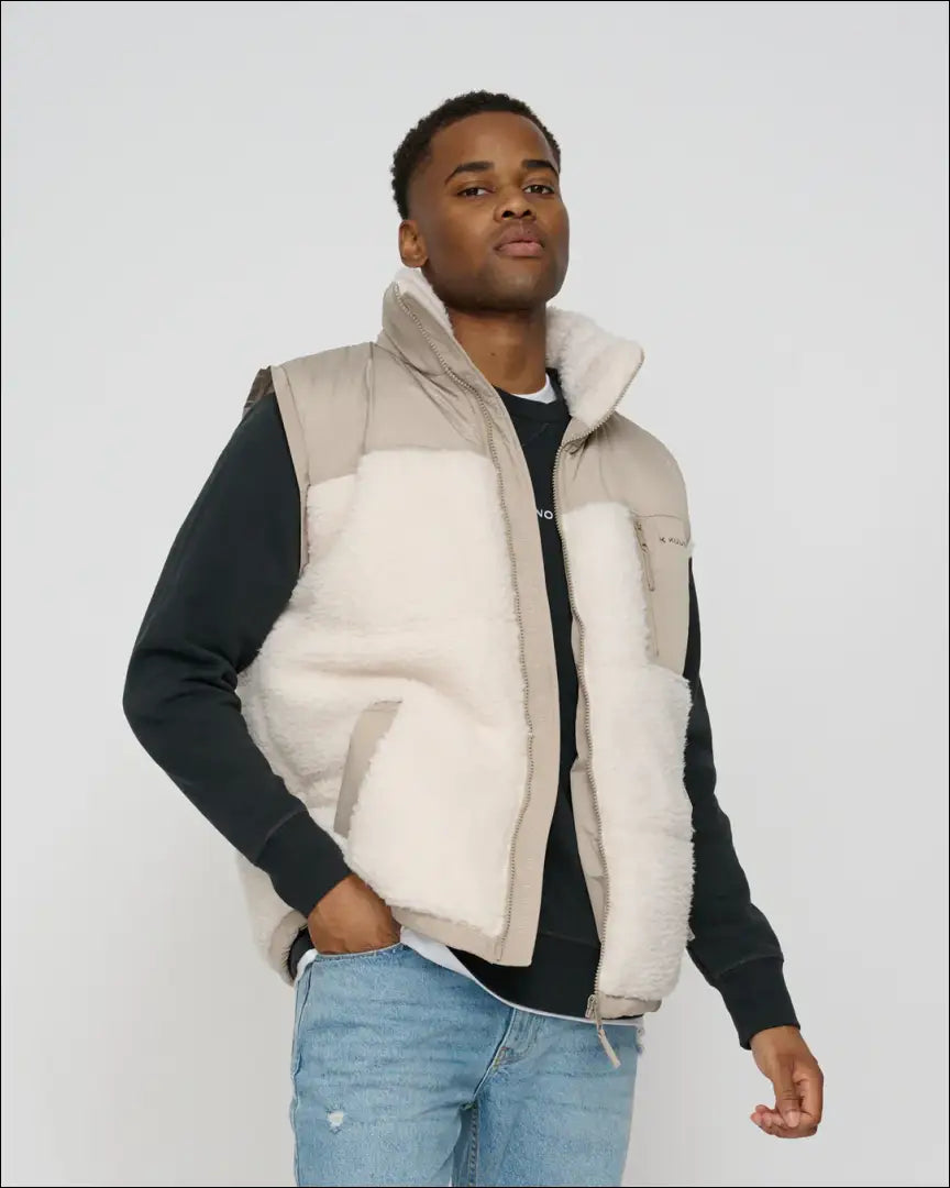 Унисекс-пуховик из мягкого шерпа-флиса; Крупногабаритный тип; Стиль «пуховик» из-за толстой подкладки; Куртка 2 в 1 с рукавами на молнии; Можно носить как жилет, рукава отстегиваются; Нагрудный карман и глубокие боковые карманы на молнии; Манжеты рукавов регулируются с помощью липучки; Подол с кружевом; Высокий воротник-стойка; https://www.kuuno.com/products/everyday-puffer-jacket-off-white?variant=39727406874712 «Кууно»; Упаковка для транспортировки может быть не оригинальной, товар поставляется в полностью или частично собранном виде; |