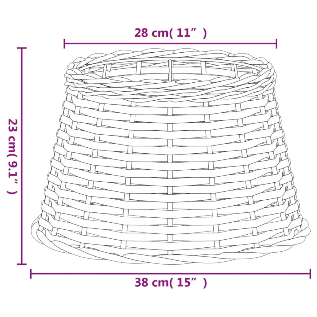 23 cm aukštis x 28 cm viršaus skersmuo x 38 cm apačios skersmuo |