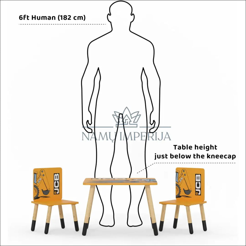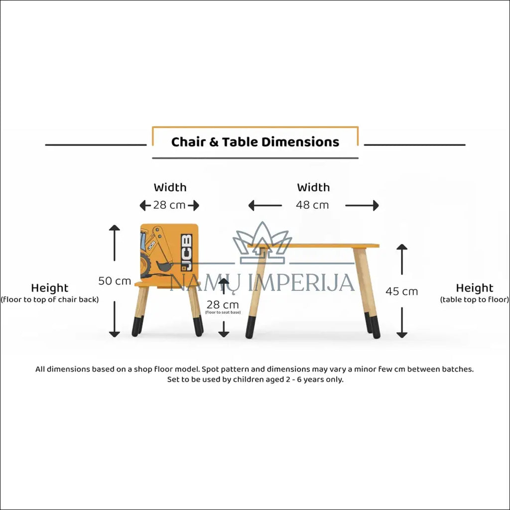 Kėdutė - 50 cm aukštis x 28 cm plotis x 28 cm gylis Staliukas - 45 cm aukštis x 48 cm x 48 cm |